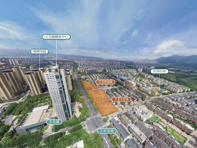 其中江东街道下王A地块出让面积20.11亩,容积率3.0,规划打造商务和垂直楼产品;江东街道下王B地块出让面积11.92亩,容积率2.2,规划打造垂直楼产品。两宗地块均位于义乌市融媒体中心南侧,紧邻义乌国际博览中心及义乌梅湖体育中心。