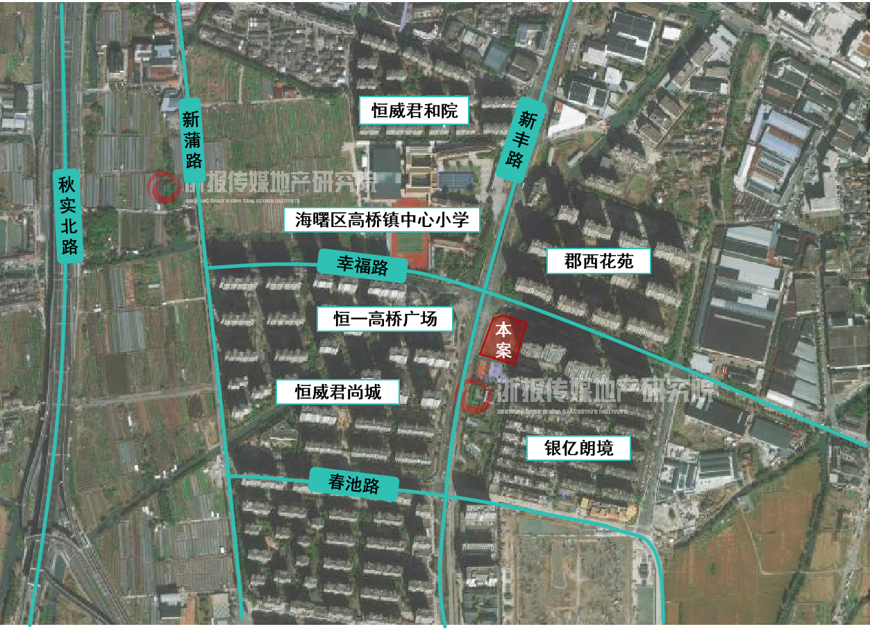 地块位于海曙区恒一高桥广场东侧,周边环绕多个成熟住宅小区,居住氛围浓厚,消费基础稳固;同时,地块毗邻小学与规划公园,可形成持续且稳定的日常与目的性消费客流。
