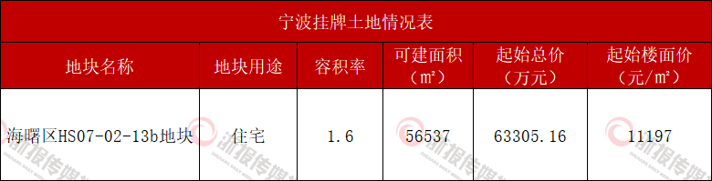 起始楼面价11197元/㎡ 宁波海曙宅地挂牌 容积率1.6+四代宅