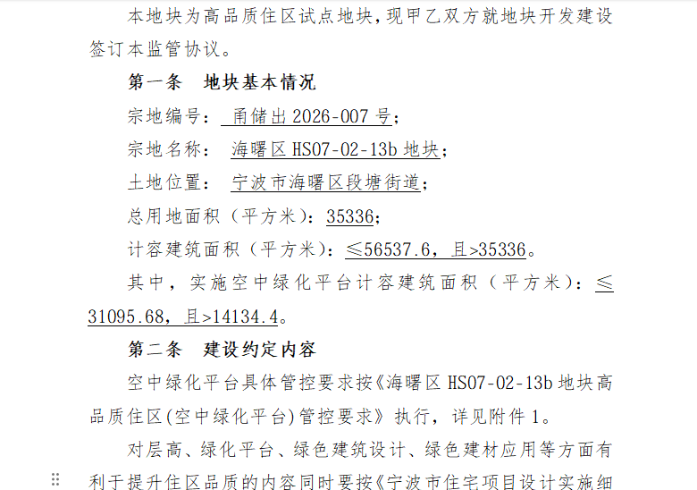 高品质住区监管协议截图(来源:浙江省自然资源网上交易中心)