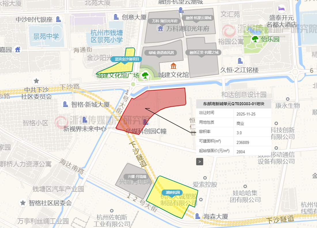 该项目于本月25日出让成交,由商业运营巨头银泰集团与和达投资集团联合打造超40万㎡的标杆型城市综合体,欲建成东部湾新城 “形象封面”、钱塘区“城市名片”。