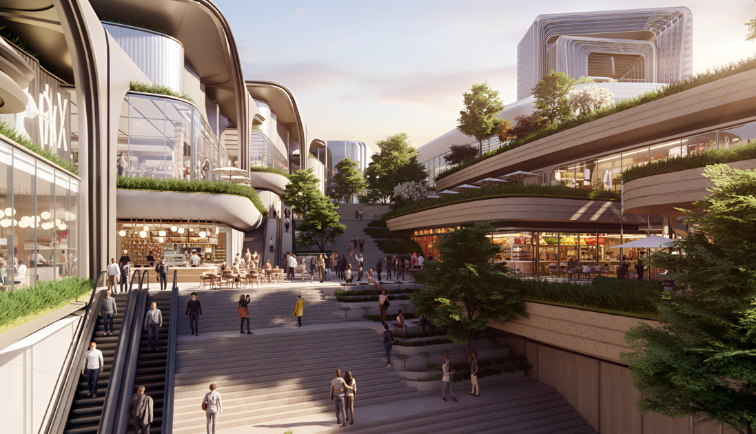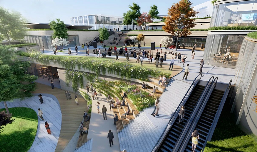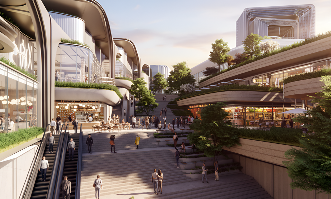 未来,市民与游客可沿此绿轴悠然漫步,依次经过“银杏山径”、“绿谷”及屋顶“云端村落”等八大主题空间,在逛街的同时,宛若穿行于一座现代感十足的立体江南园林之中,收获移步换景的沉浸式体验。