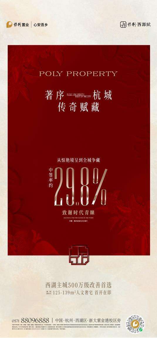 10月15日,西湖主城备受瞩目的热盘——保利置业·西源赋正式公布报名结果:首开推出105套房源,吸引352组购房者登记,综合中签率约29.8%,平均约3人争抢一套房,热度居高不下。