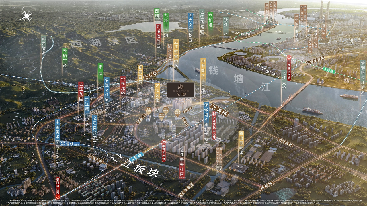 左西湖右钱塘,地处之江核芯C位、双银泰商圈腹地,一路之隔,即是近年落成的浙江省四馆一中心,都会级山水、商圈、文化配套,全都触手可及。