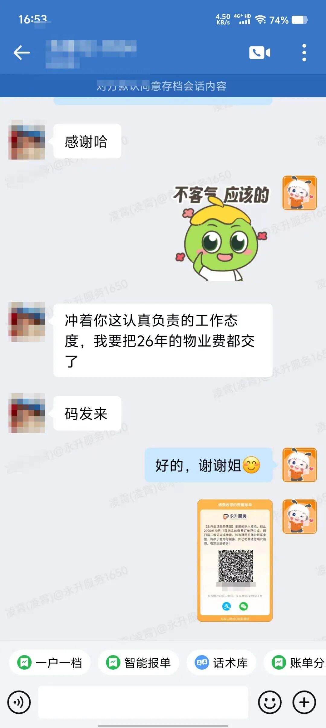 “冲着你这认真负责的工作态度,我要把26年的物业费都交了,码发来!”