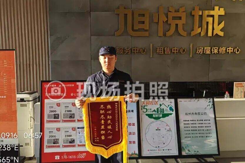 杭州野风山城小区物业管家黄新辉近日收获了一面锦旗。没有惊天动地的故事,业主说茉莉平时服务很好,非常有耐心,每天在小区都能看到他的身影。他积极主动处理小区事务,务实有干劲,让业主感到非常满意。