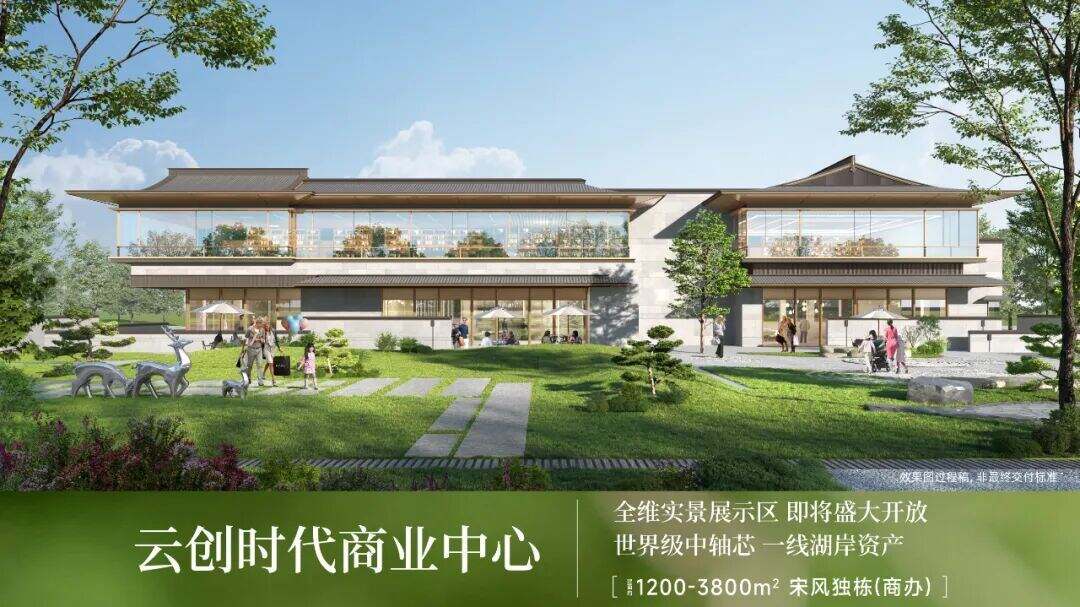 建面约1200-3800㎡的宋风商业独栋、建面约800-1600㎡的湖景总部楼宇,全维实景展示区,即将盛大开放