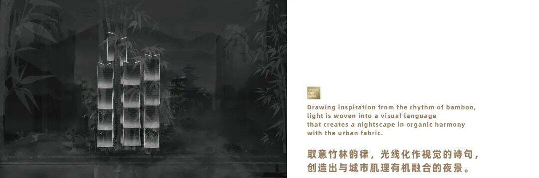 除了物理的高度视觉,bpi认为必须创造项目“动态的立面叙事”:面向独具山水诗韵和人文精髓的杭州,设计团队取意竹林韵律,模拟竹节层层攀升的自然动态,与竹节状的建筑共同创造出与城市肌理有机融合的夜景光线。