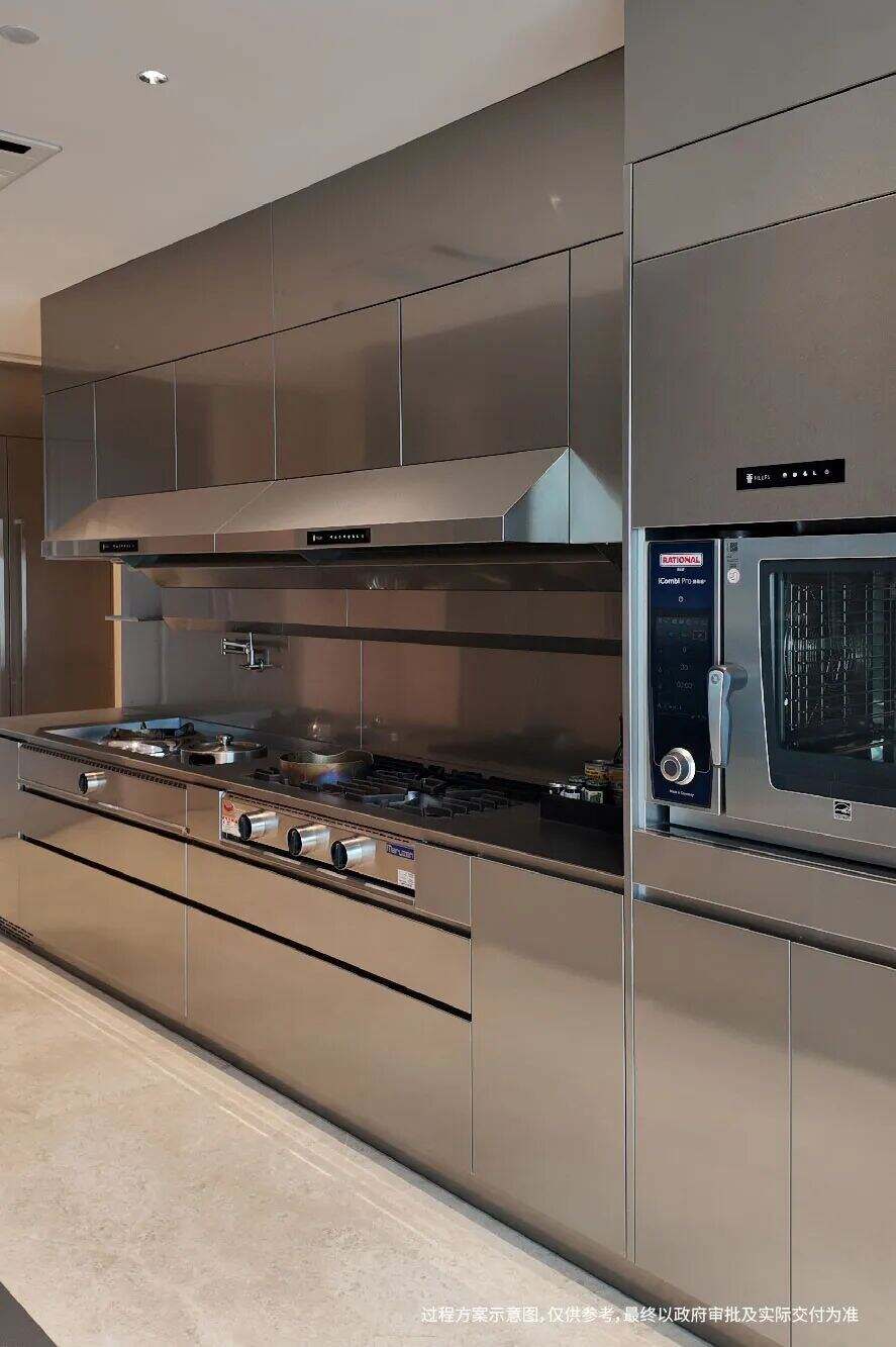 专业化厨房:把米其林后厨搬回家,采用 304 食品级不锈钢,手工定制橱柜(金属包边防割手)、超长洗手池(整鱼清洗)、星级厨师动线、米其林厨房的烹饪标准的中餐灶、米其林餐厅专用德国温特豪德专业洗碗机,构建一个专业级烹饪舞台。
