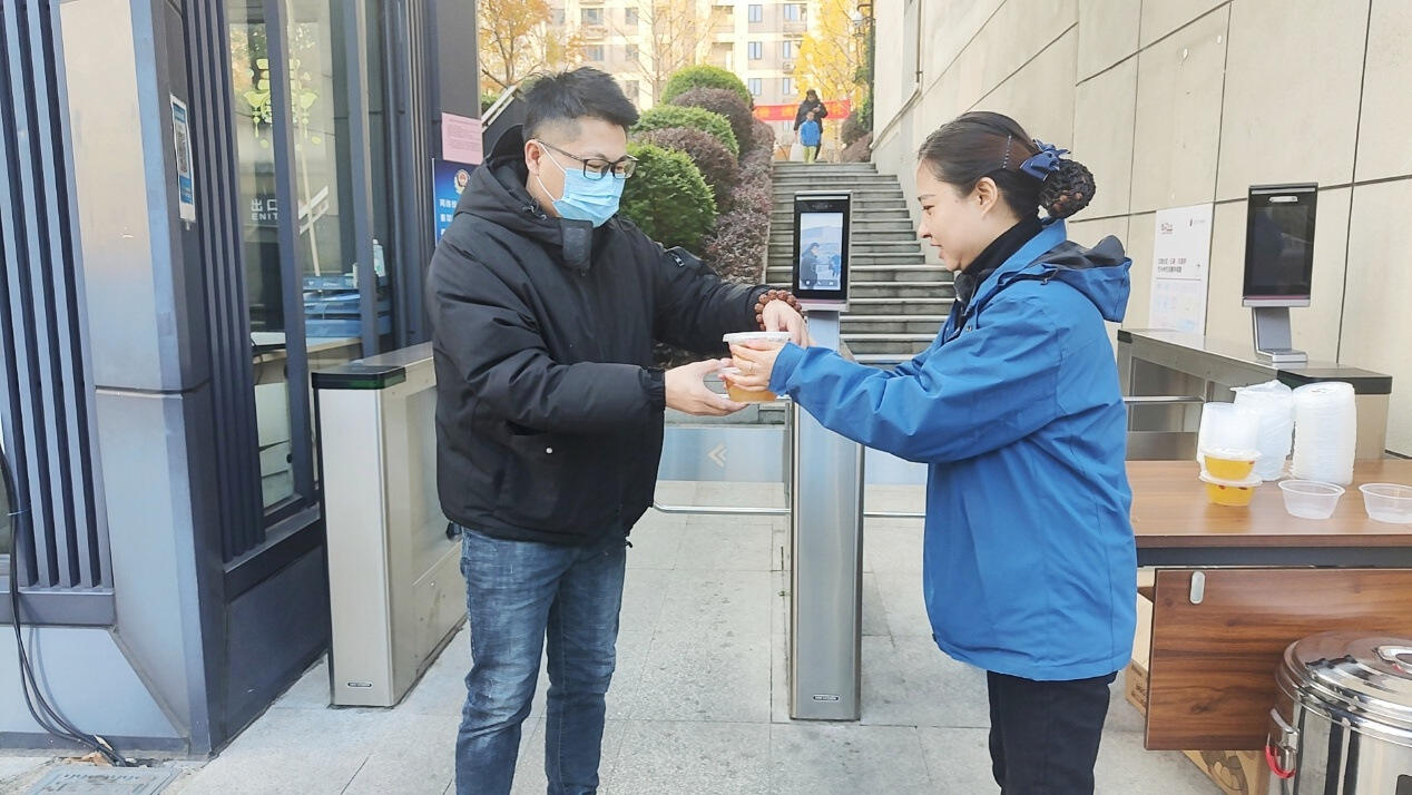 杭州桦枫居园区冬日送热饮现场