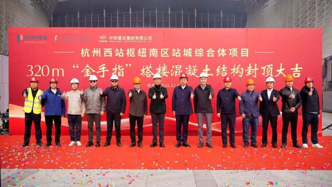 12月8日10点,混凝土泵车和塔吊机停下轰鸣,位于杭州西站TOD之上的“金手指T1”主塔楼核心筒成功浇筑至61层约280米,这座由全球地标大师SOM建筑事务所执笔的摩天地标,终于迎来混凝土结构喜结金顶的重要时刻。