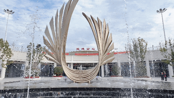 建德南站采用线侧下式站房设计,站场规模为2台6线。走进候车大厅,就能感受到“云山雾影,山水建德”的氛围感。