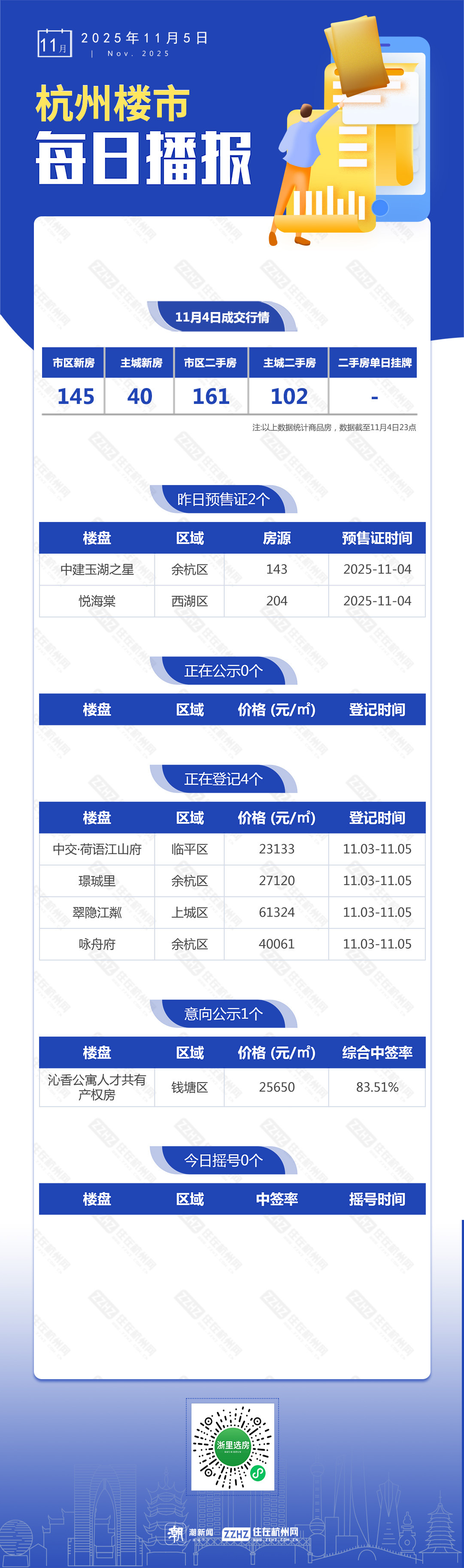 11月5日,杭州新房2盘预售,4盘报名中