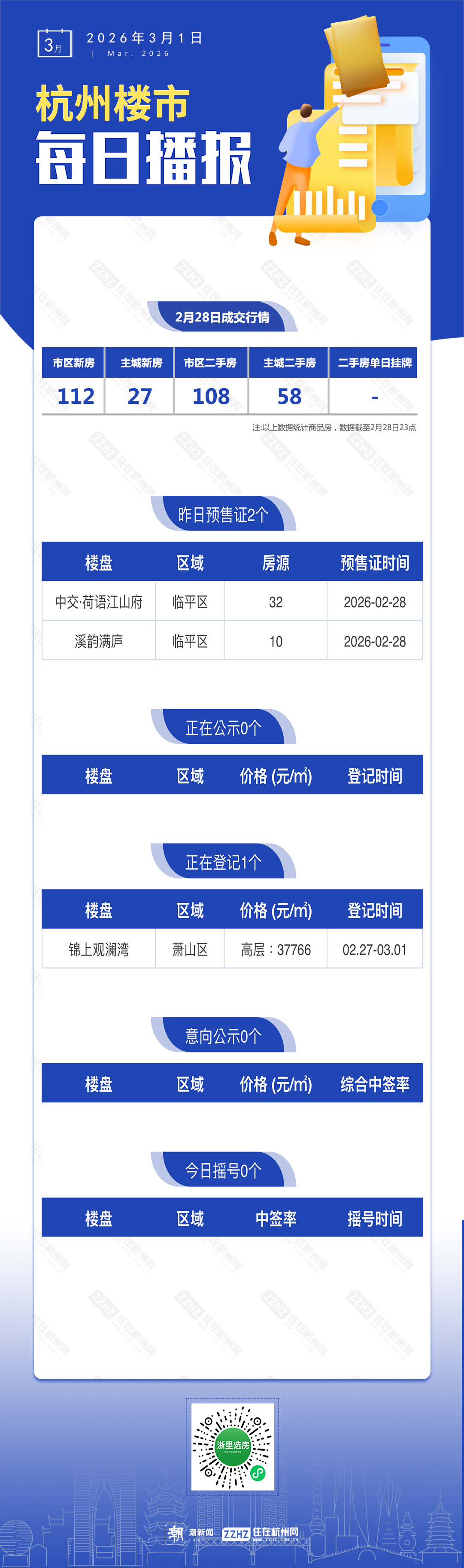 3月1日,杭州新房2盘预售,1盘报名中