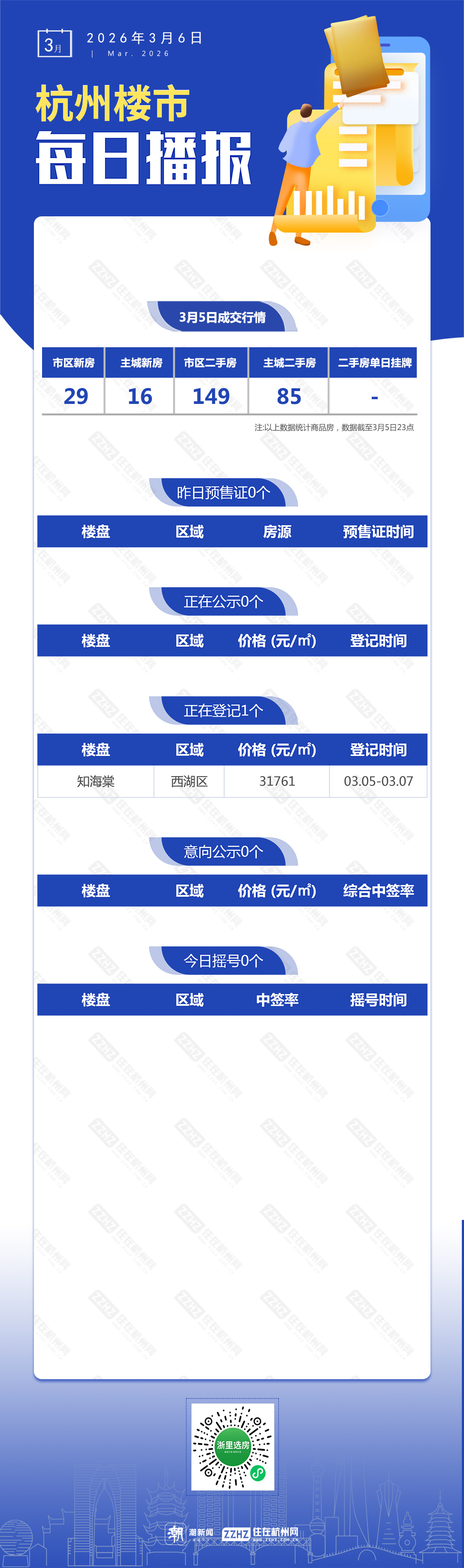 3月6日,杭州新房5盘预售,1盘报名中