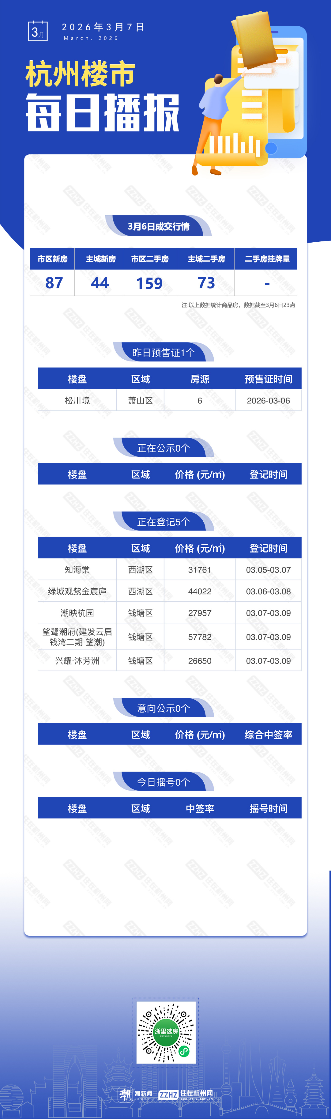 3月7日,杭州新房1盘预售,5盘报名中