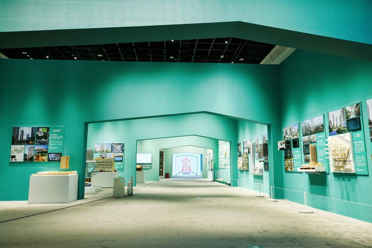 以序厅为起点走进展区,由不同大小的“宀”造型隔墙组成的门洞映入眼帘,穿越其间仿佛踏入了一部立体的建筑画卷,再搭配上“越窑青”的整体色调,中式传统“家”文化的内核于浙江山水意境的烘托下徐徐铺展,来自全省11个地市最能体现“好房子”特色的人居范式与精工沙盘分布其间,静候评鉴。