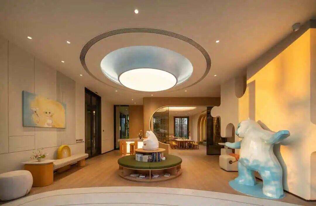 下沉式庭院与会所的融合,实现了真正意义上的场景升华。层叠错落的石材勾勒出山峦峡谷的意象,环绕其间的无涯书房、雅致会客厅、专业健身房……让精神的静谧与身体的律动,都在这一方微缩的 “山水” 中找到了归宿。