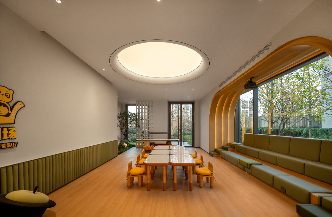 社区的营造,充满“围合的善意”。建筑布局巧妙地包裹起中央景观的丰盛,让园林不仅被观看,更被深度体验。从承载文化启蒙的 「春知学堂」 ,到促进邻里交往的环形社交剧场,再到满足全龄段活动的活力场域,每一处空间都在重新连接现代生活中 “消失的附近”。