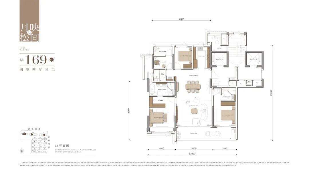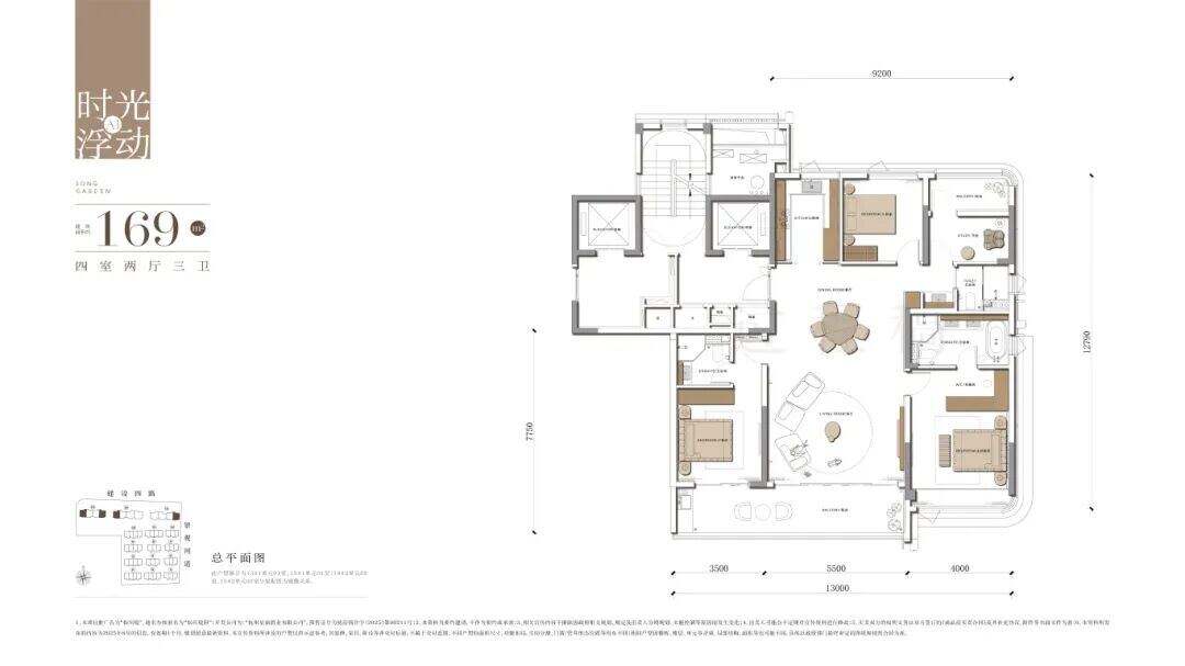 以建面约169㎡户型为例,通过飘窗不计面积等精细化设计,实际可得面积达到约152㎡,实得率接近90%。