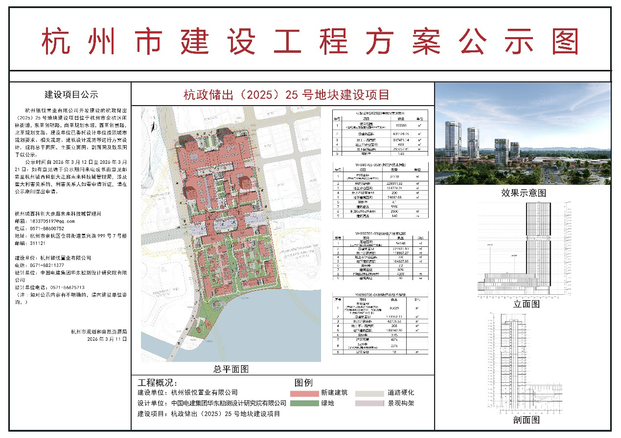 住在杭州网3月12日讯(记者 詹慧雯)近日,杭政储出(2025)25号地块建设项目即杭州银泰中心,正式规划公示。