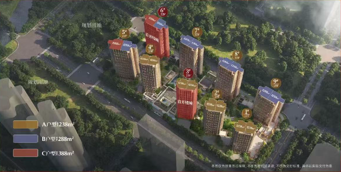 从总价上来看,约238㎡户型,总价段在1460-2100万元之间;约283㎡户型,总价段在1940-2700万元之间;约388㎡户型,总价段在2780-4500万元之间。