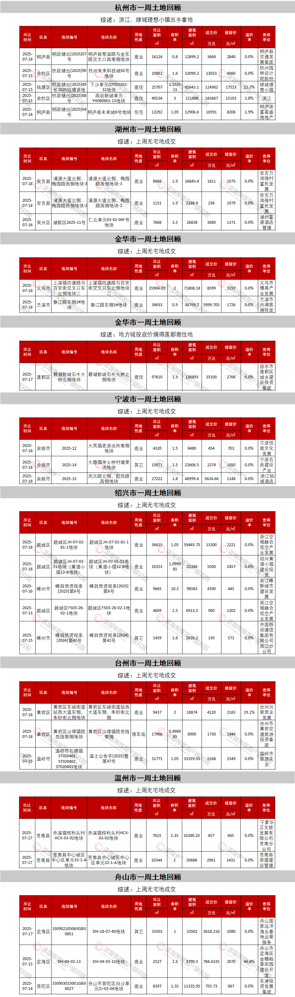 本周浙报传媒地产研究院对省内4个城市土地出让进行3场直播: