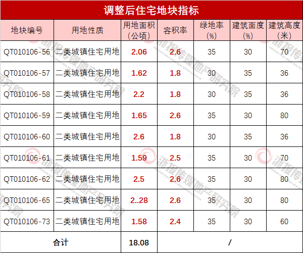 调整后宅地指标如下: