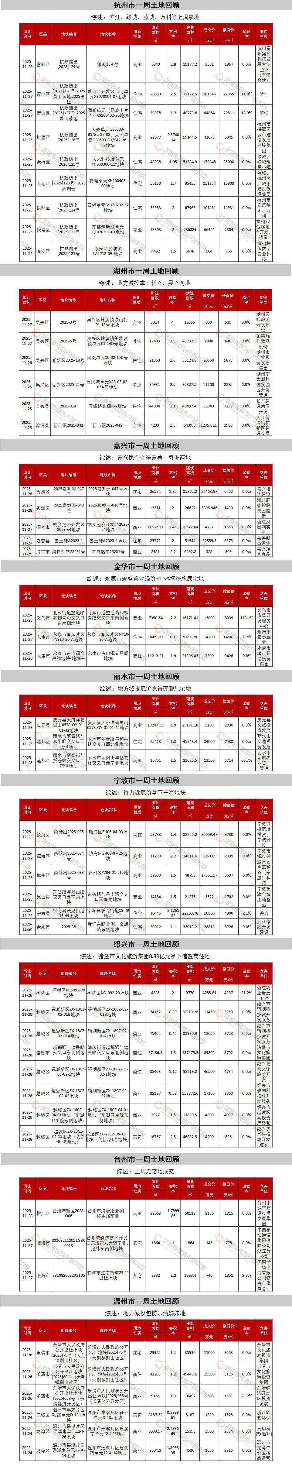 本周浙报传媒地产研究院对省内7个城市土地出让进行5场直播: