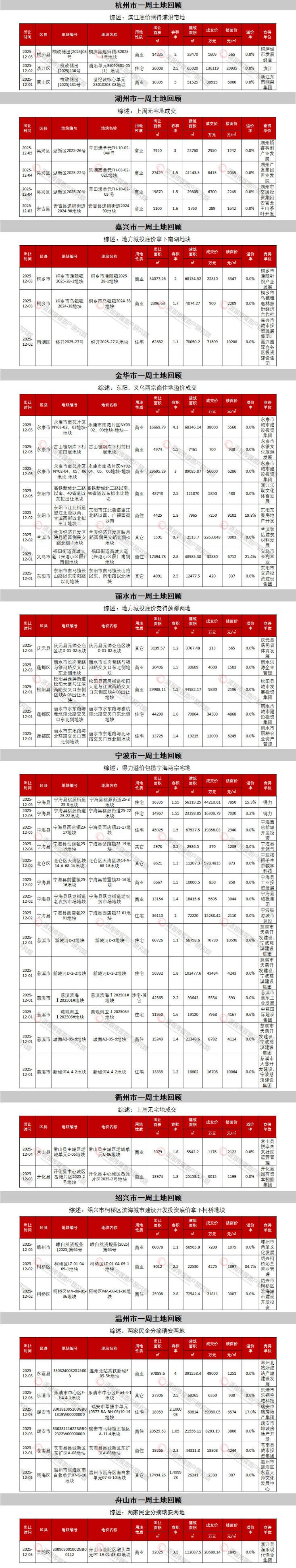12月2日:金华东阳宅地溢价20%成交 嘉兴绍兴宁波宅地底价成交