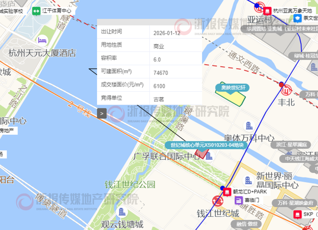 2026年1月12日,古茗技术(浙江)有限公司以总价45549万元底价竞得世纪城核心单元XS010203-04地块,成交楼面价6100元/㎡,溢价率0.0%。