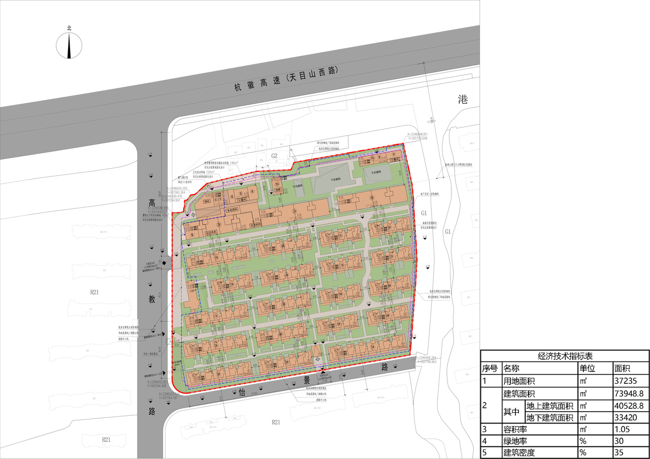 项目用地面积为37235㎡,总建筑面积为73948.8㎡,其中地上建筑面积为40528.8㎡,地下建筑面积为33420㎡,容积率为1.05,建筑密度为35%,绿地率为30%。