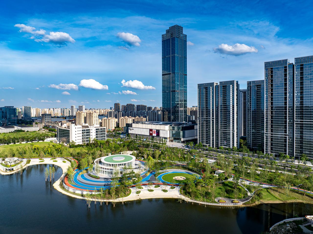 以玉湖为核心的商务核心区,是良渚新城城市功能与总部经济的核心引擎,在这里聚集了世界500强、中国500强区域总部或创新总部项目,未来将在此打造高能级的总部经济聚集区。