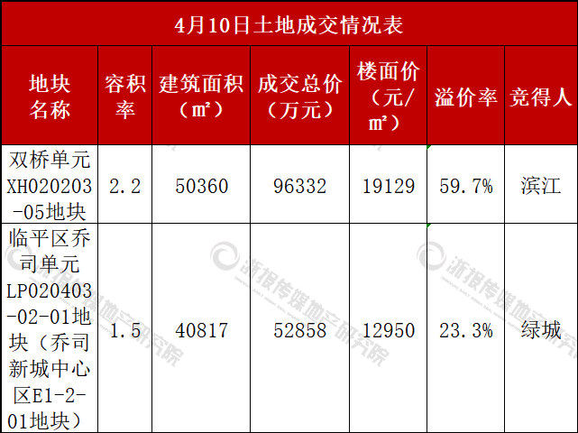 住在杭州网4月10日讯(记者 李成)在前两天华润高溢价竞得滨江襄七房地块后,今日西湖双桥、临平乔司地块展现出了更高的热度,双桥地块由滨江溢价60%竞得,楼面价19129元/㎡,刷新了双桥板块楼面价纪录,乔司地块由绿城以12950元/㎡竞得,溢价率同样达到了23%。