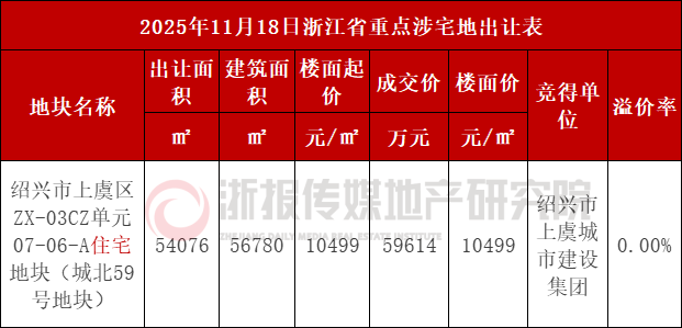 绍兴上虞低密宅地底价成交,本土城投拿地