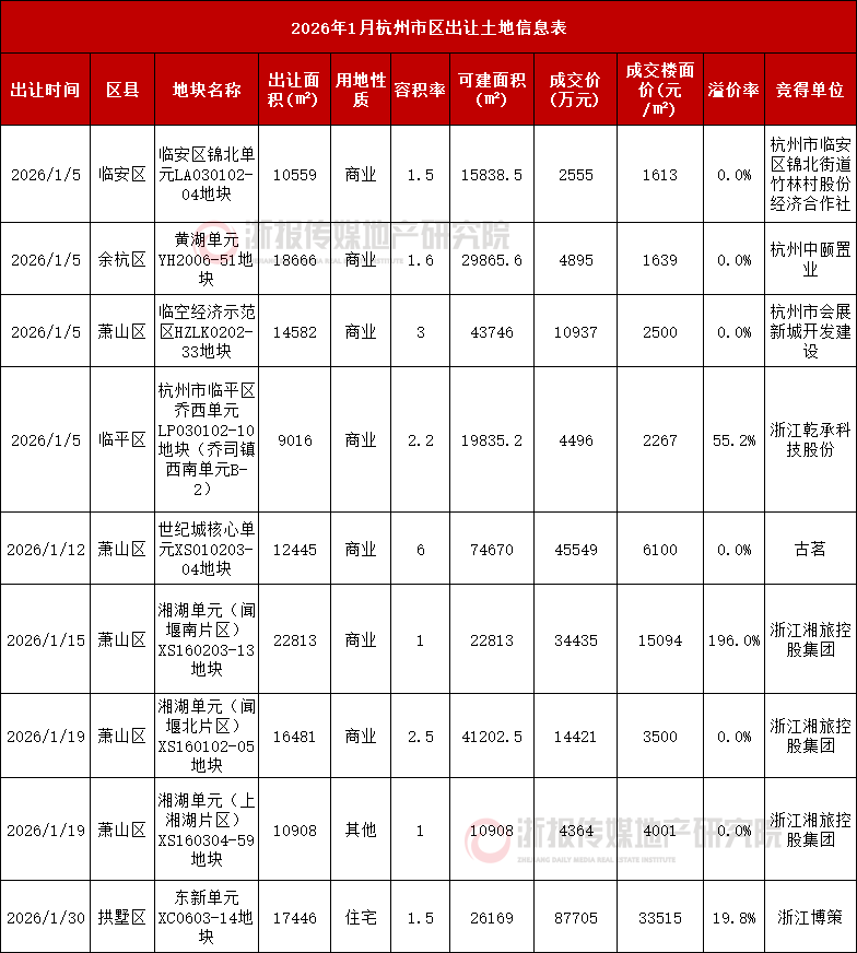 杭州土地1月报 |宅地延续回调趋势 商地占据主力