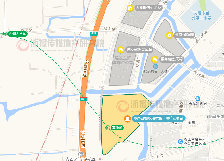 2025年7月29日,上海泓喆房地产开发有限公司、杭州市城市土地发展有限公司、杭州地铁开发集团有限公司(华润&杭地发&杭州地铁)以底价268463万元竞得三墩单元XH010101-14地块,成交楼面价为13092元/㎡。