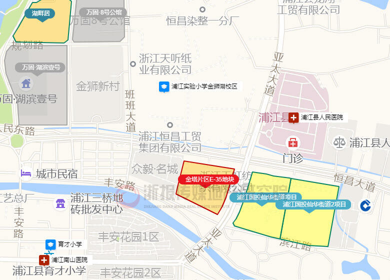 浦江地块位于经济开发区板块,但距离金狮湖板块较近。周边配套逐步完善,目前有浦江县人民医院、浦江实验小学金狮湖校区、浦江县第四中学等相关配套。