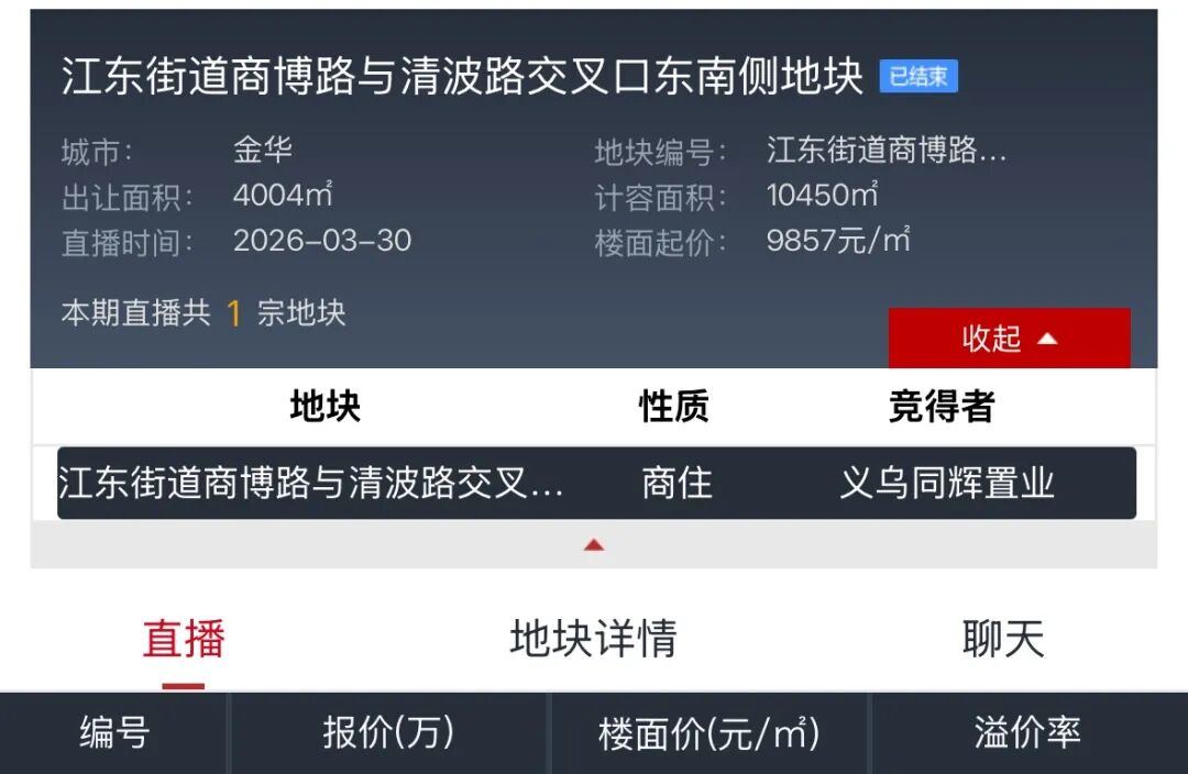 今日地块得主义乌同辉置业是义乌本土的民营企业,其此前在2025年4月在后宅区块也有过拿地,开发了神舟楼项目。