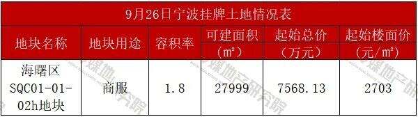 住在杭州网9月28日讯(记者 郑青青)9月26日,宁波发布公告,海曙区丁家街区首宗商服用地正式挂牌出让,定于10月27日拍卖。