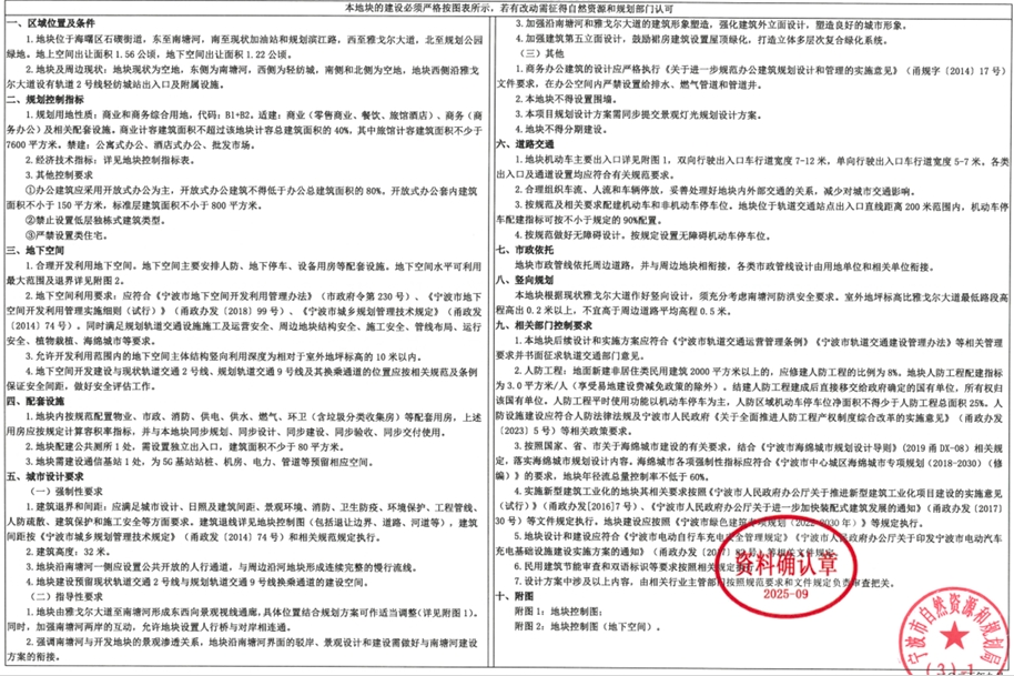 3、地块需配建1处80㎡公共厕所,建设1处5G通信基站。且无偿移交给海曙区人民政府石碶街道办事处、政府指定的国有单位所有。