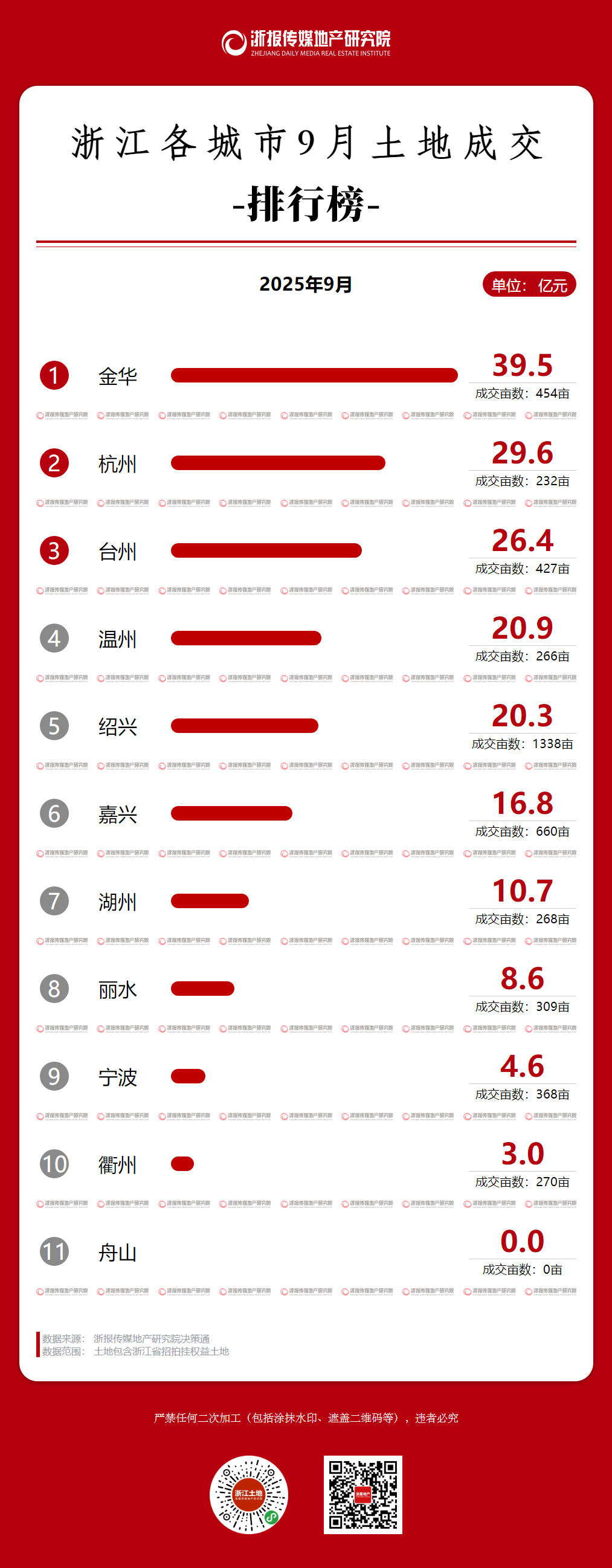 浙江土地9月榜:金华39.5亿力压杭州居首 浙系头部房企持续缺席