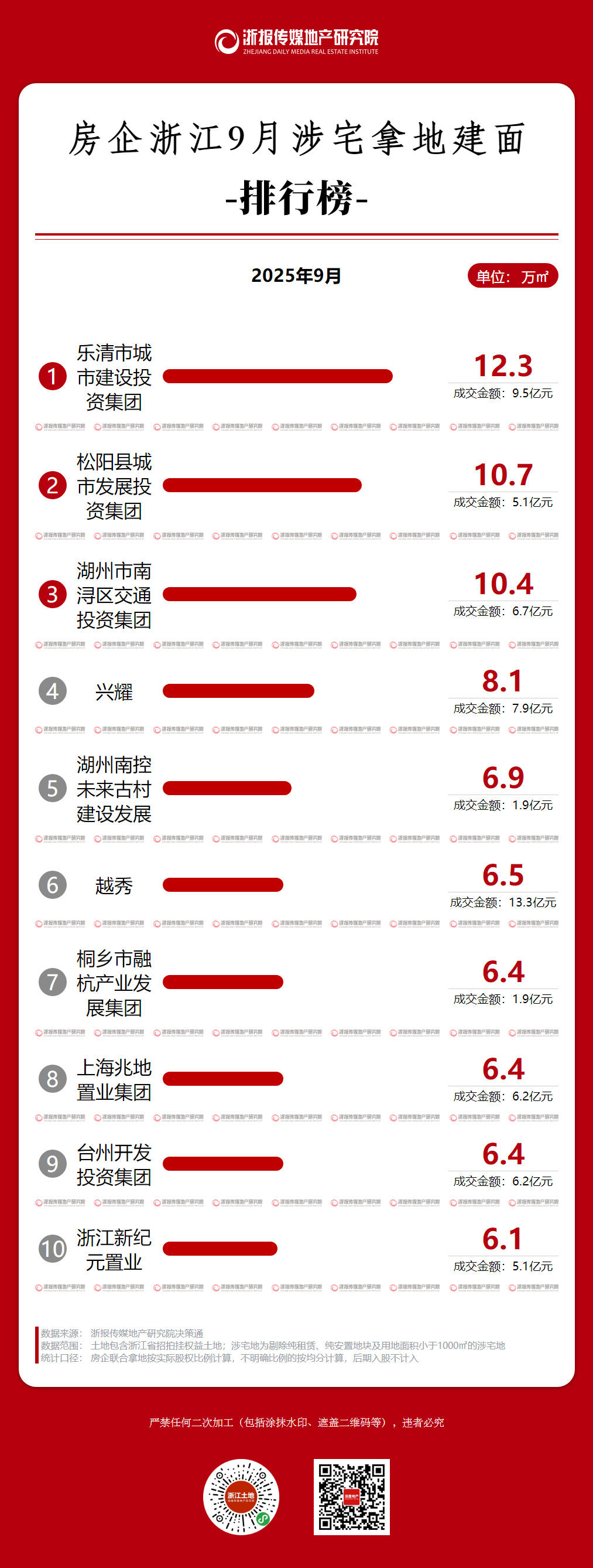 住在杭州网10月1日讯(记者 郑青青)2025年9月,浙江省全省共成交127宗土地(不含工业仓储、出让面积小于1000㎡的经营性用地),其中涉宅地33宗(剔除纯租赁、纯安置、出让面积小于1000㎡的涉宅地,下同),总建面145.0万㎡,总出让金115.0亿元,平均成交楼面价7931元/㎡,平均溢价率13.1%。