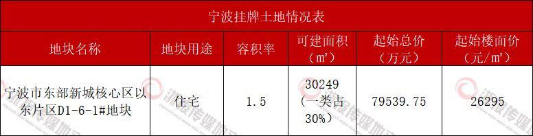 地块出让面积20166㎡(30.25亩),容积率1.5,建筑面积30249㎡(一类住宅计容建面30%),起始总价为79539.75万元/㎡,起始楼面价为26295元/㎡。