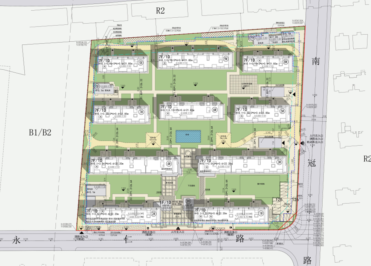 项目规划总用地面积为27211㎡,容积率1.5,绿地率30.01%,建筑密度34.02%,总建筑面积为67114.5㎡,其中地上建筑面积43414.5㎡,地下建筑面积23700㎡。