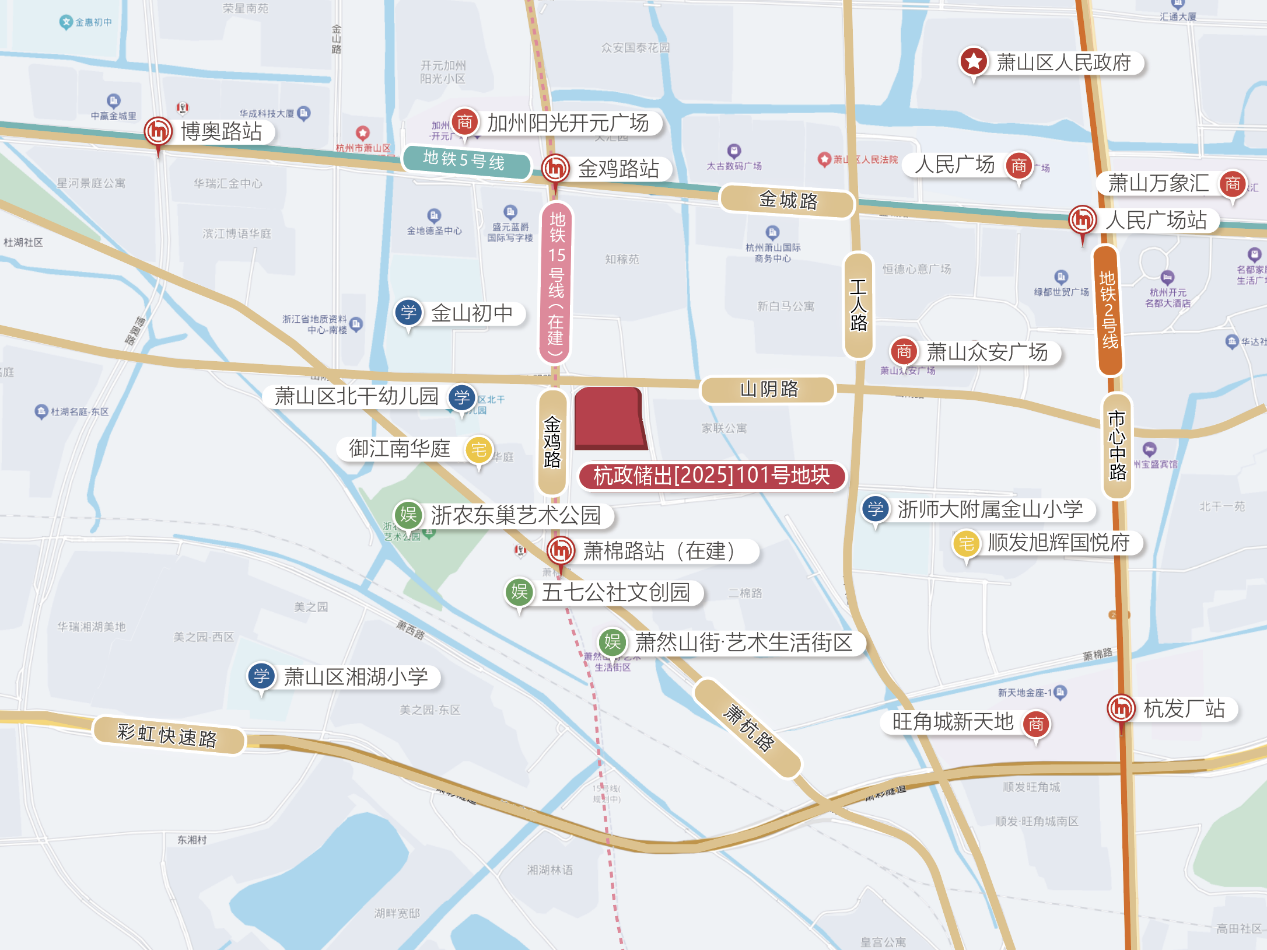 该地块同时是地铁四期15号线萧杭路站(在建)的上盖地块。作为萧山地铁沿线开发的主要力量,萧山交投集团紧抓杭州地铁四期建设机遇,聚焦TOD(以公共交通为导向的开发)商办综合开发,融合地铁地下空间,致力重塑区域发展格局。为确保项目高效落地,集团制定了“全生命周期推进表”,实现报批环节效率提升30%以上,已完成方案设计及相关村社意见征求工作,目前正开展勘察设计招标中,计划于今年年底开工建设。