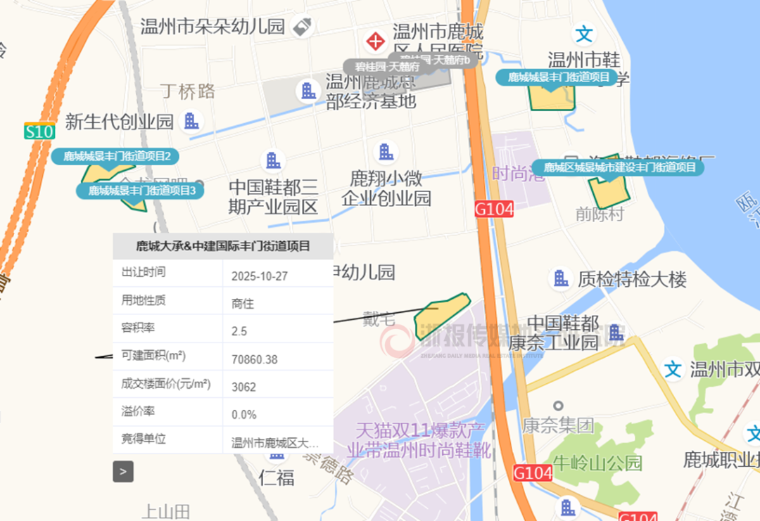 2024年底以来,鹿城鞋都片区逐步增加供应,此前已成交4宗住宅用地,均由鹿城城景城市建设底价竞得,目前仍处于储备状态。相较于去年的4524元/㎡成交楼面价,今年成交普遍在3000-3600元/㎡区间,底价有所下降。