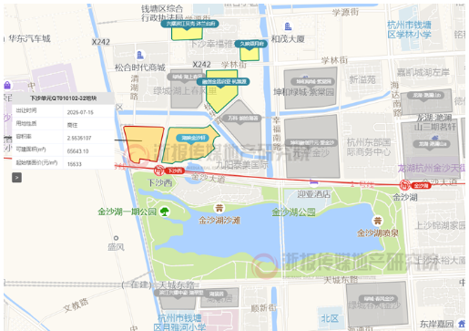 本次出让地块可谓是金沙湖南北沿线仅有的“机遇”。在地图上看,南线从湖翠里到金沙中心再到春风金沙已经全部铺满,北线自在建的湖映金沙轩往东,泰美国际、望金沙以及杭州东部国际商务中心鳞次栉比,早已没有空位。唯独下沙单元QT010102-32地块,北岸仅有的一线沿湖住宅,往南可饱览金沙湖公园,在紧凑的城市生活中显得更加珍贵。